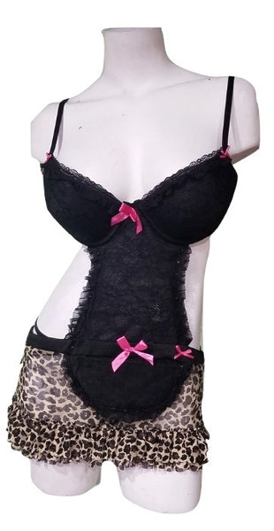 2 Piece Leopard & Blue Lace Chemise & Thong Set